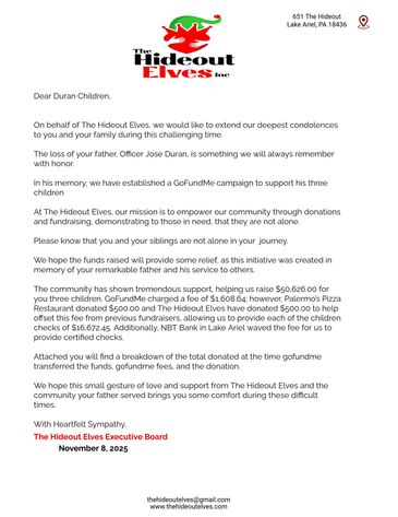 The Hideout Elves had our first raffle with the help of AVI bar located in Lake Ariel PA.